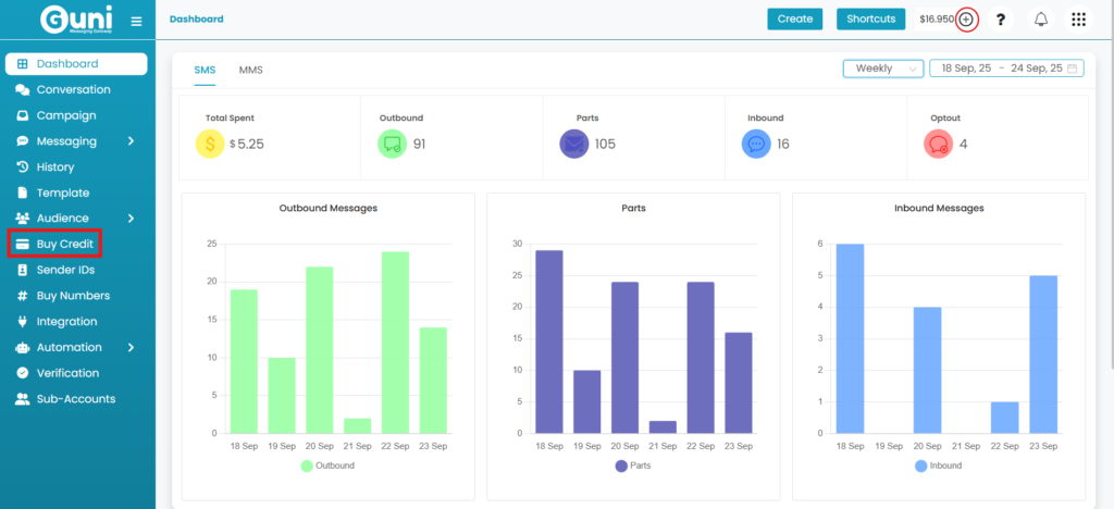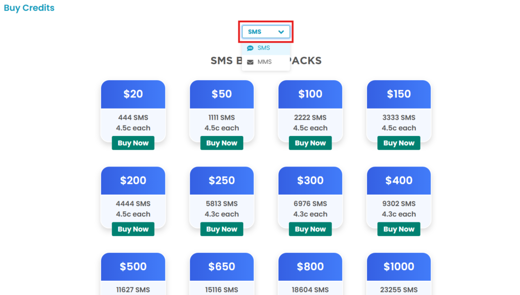 - While buying SMS credits. MMS credits will be added to the SMS bundle at the default MMS pricing.