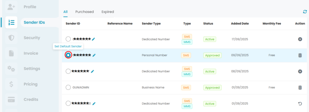 NOTE: – Using personal number as sender first you need to request your number to be used as a sender id. Once it gets approved you can use it as sender when sending SMS