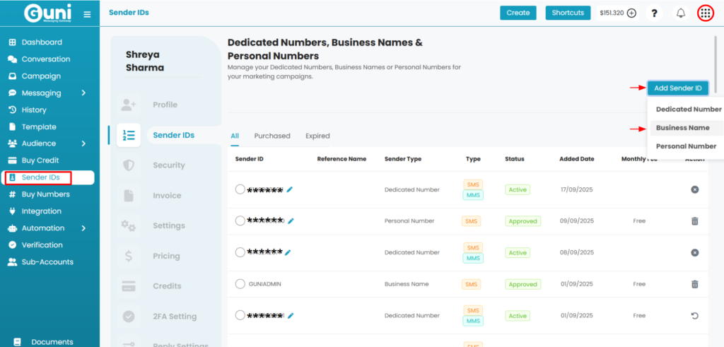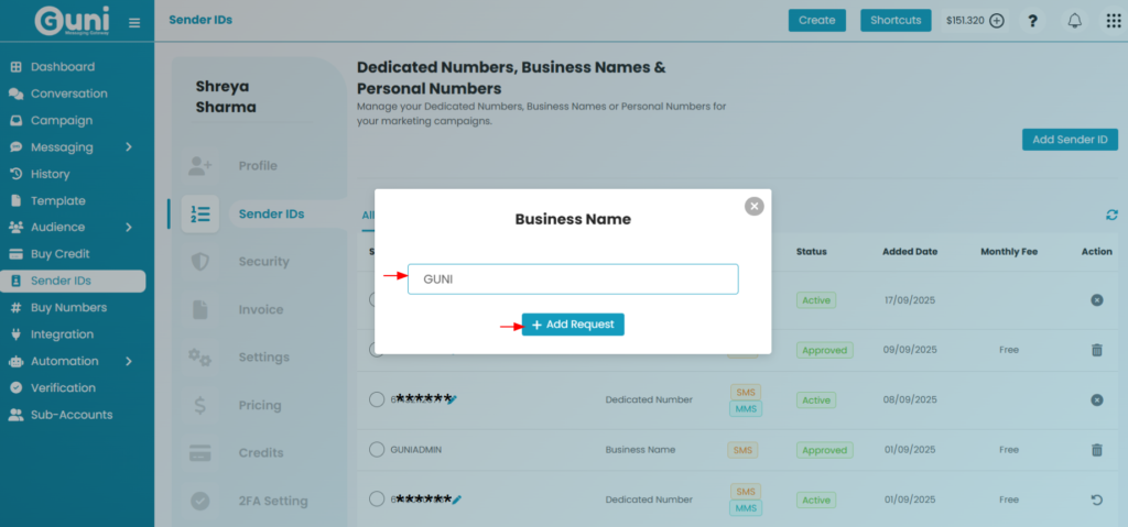 In Guni SMS, you can apply for alphanumeric Sender IDs (up to 11 characters), which are especially useful for marketing, alerts, and one or two – way transactional messages.